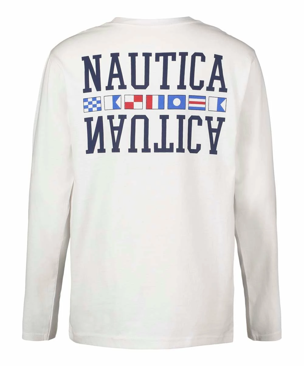 This easy-wearing tee pairs front and back graphics with cozy long sleeves.