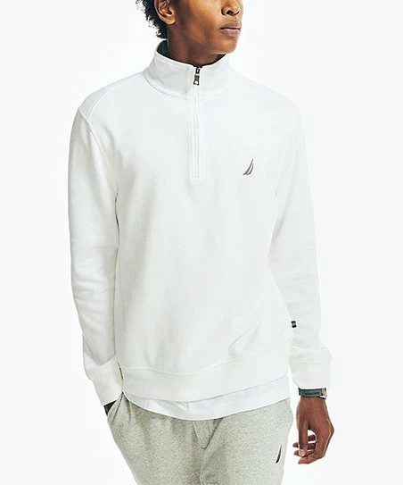 Featuring a soft cotton-bled knit fabric and mock neck collar, this fleece quarter-zip pullover is the ideal transitional piece to chillier weather.