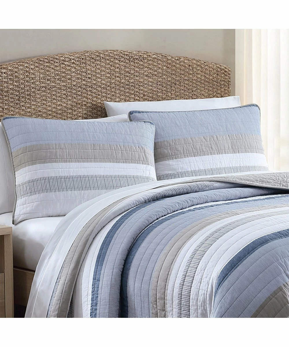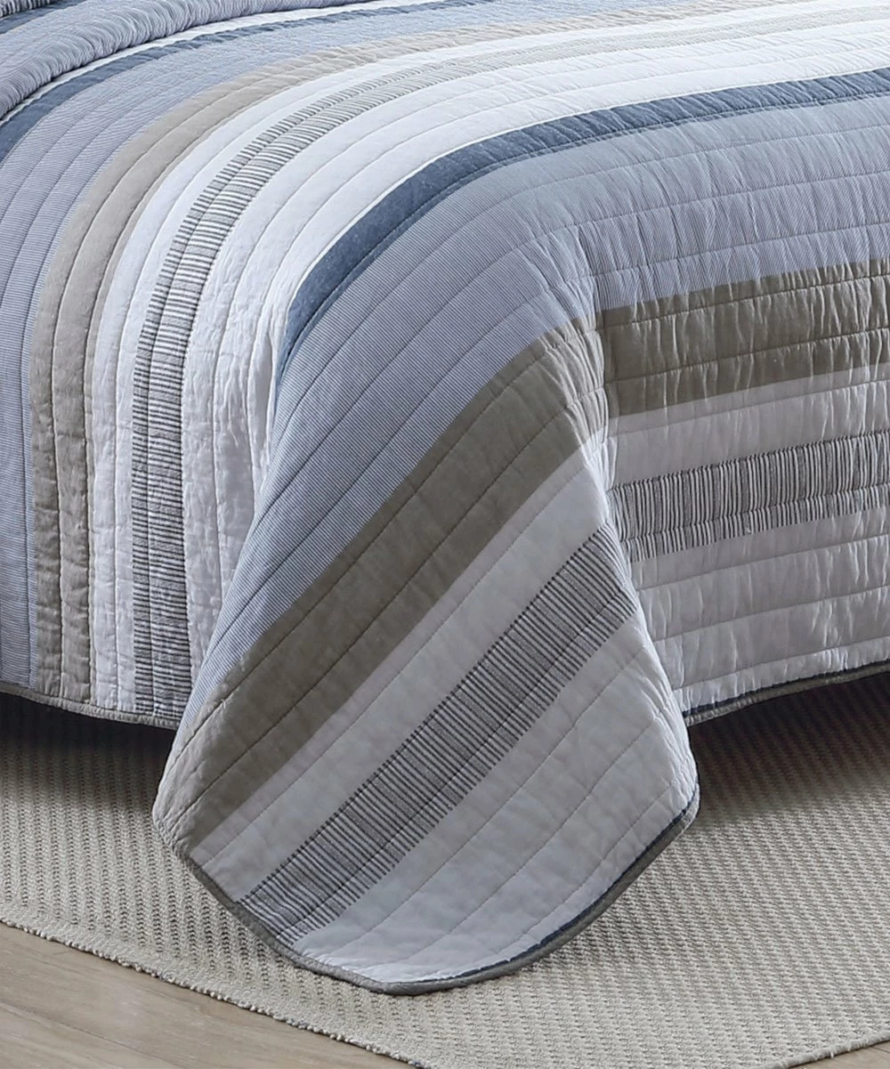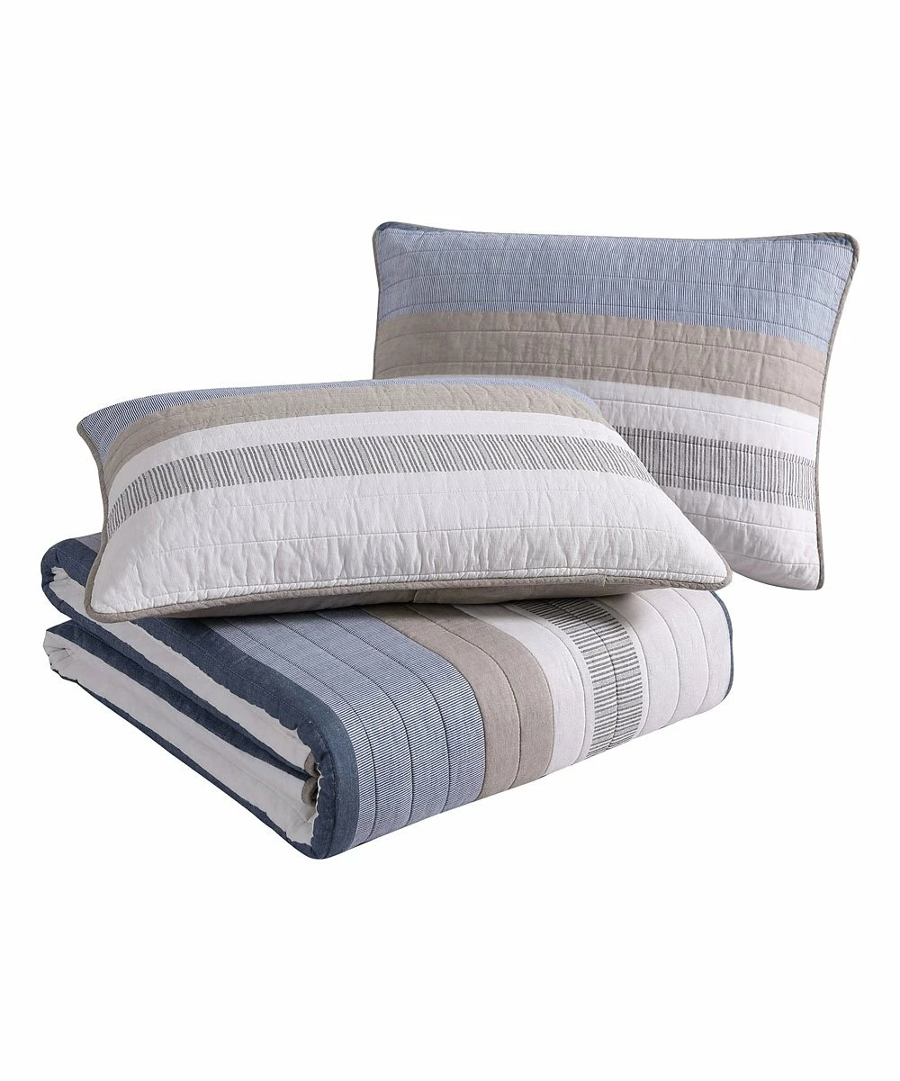 Refresh your sleep space with this quilt set showcasing a classic stripe design crafted from comfy cotton.
