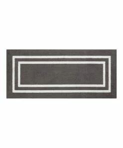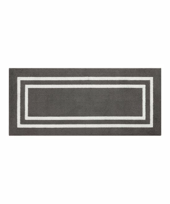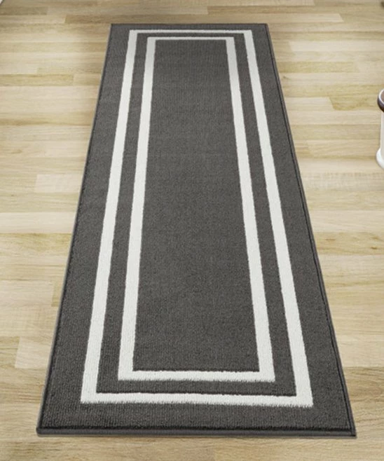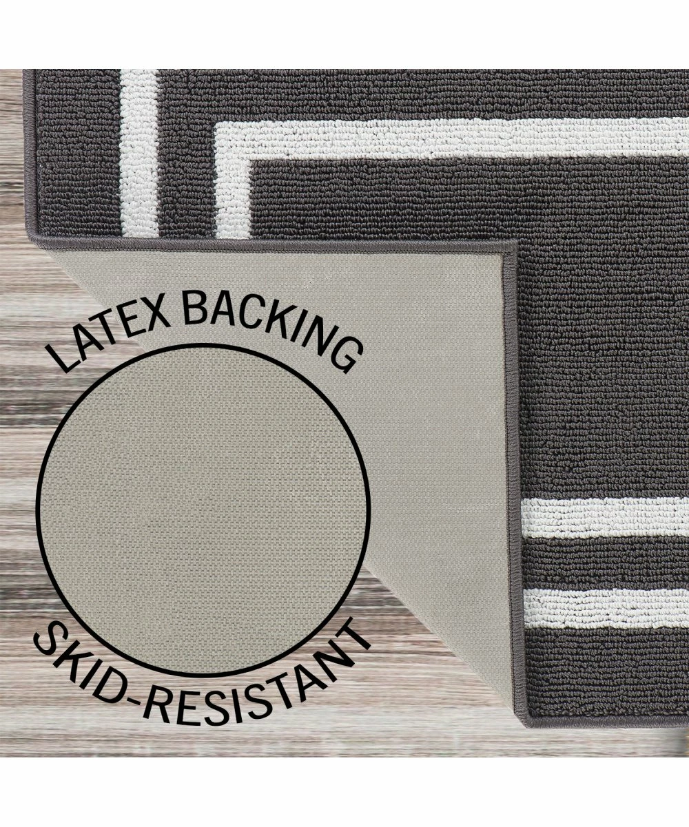 A double line border design and contrasting tones makes this runner a standout addition to your floor space. Skid-resistant backing.