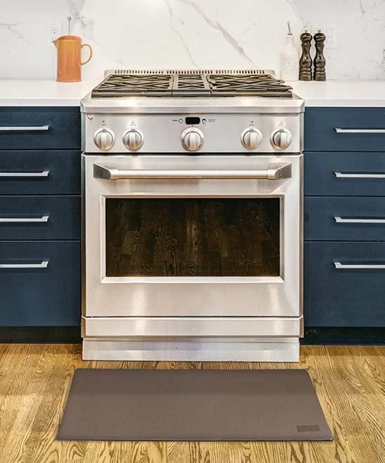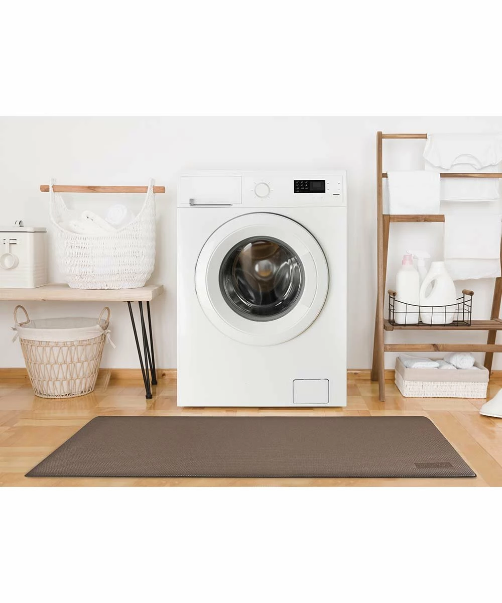 Lay this mat down for comfortable padding when working in the kitchen. It has a cushioned feel and anti-slip back. A neutral tone fits your kitchen aesthetics.