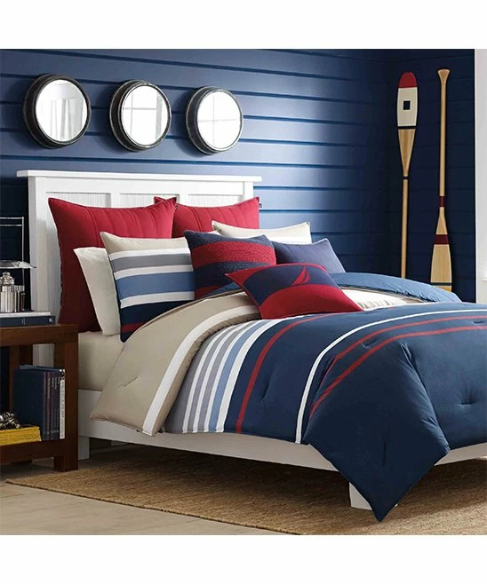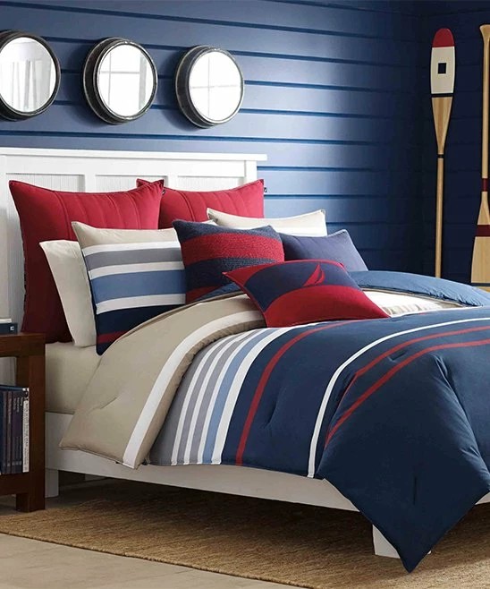 A billowing striped duvet and oh-so-soft shams envelop you with cloud-like warmth and comfort.