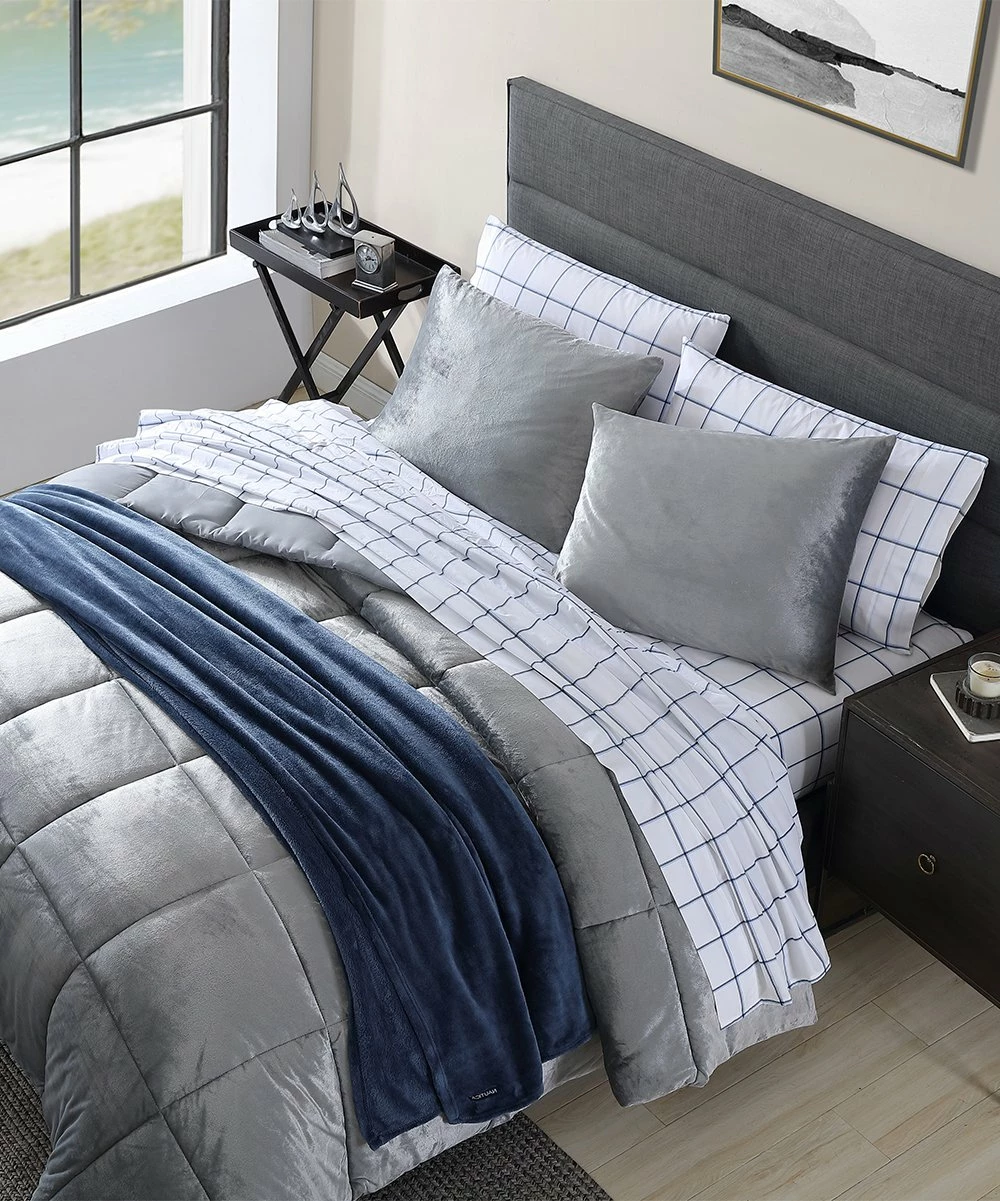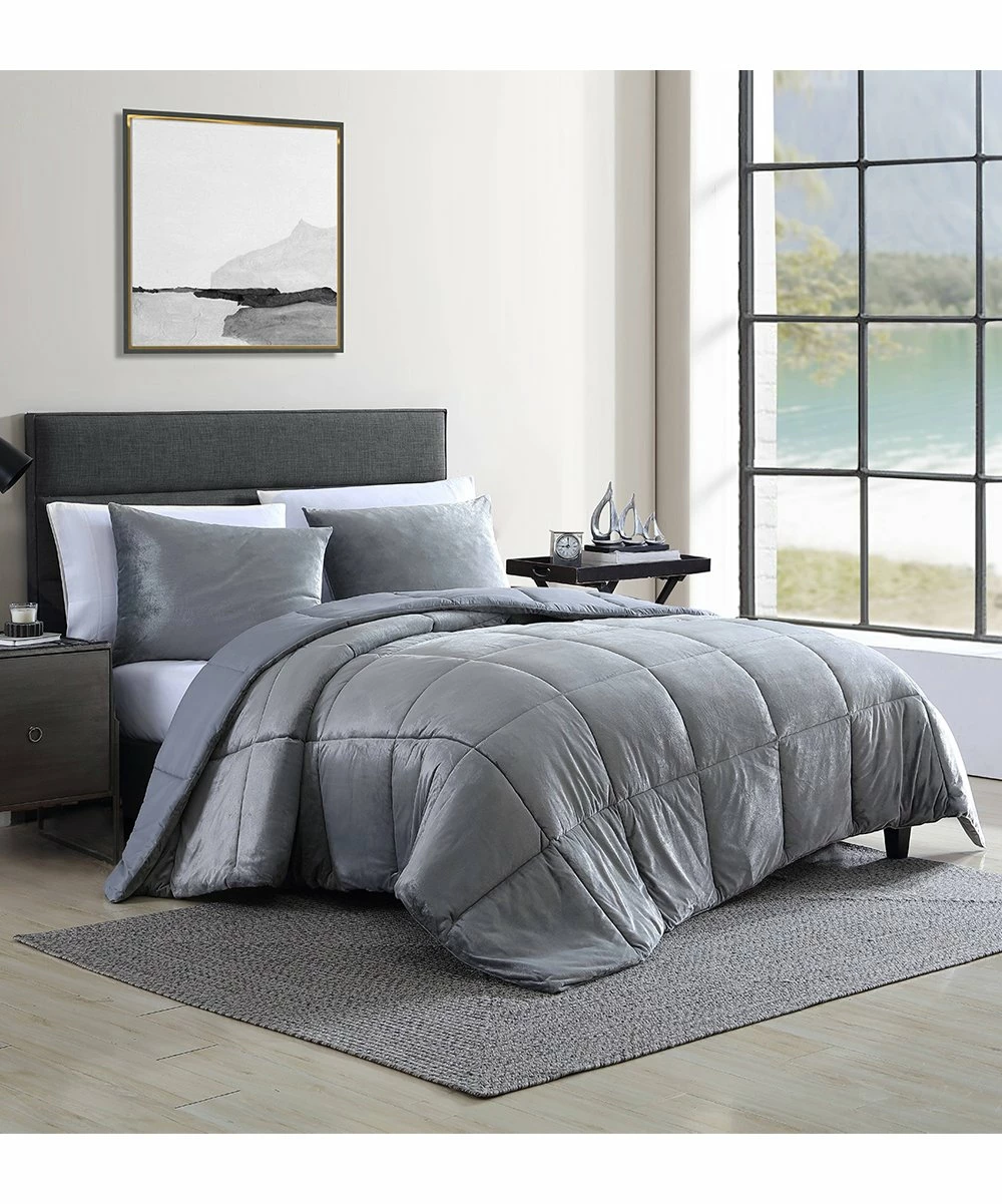 Keep cozy with this comforter set that features a plush comforter set and a quilted texture. Cool hue sets a tranquil scene in your sleeping space.