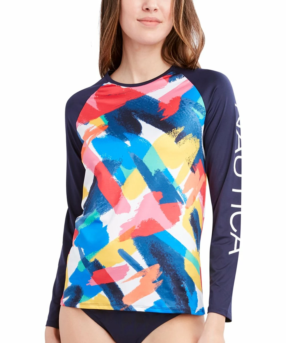 Stay sun-smart in this raglan-sleeve rashguard made from stretch-rich material with a UPF rating of 30+.