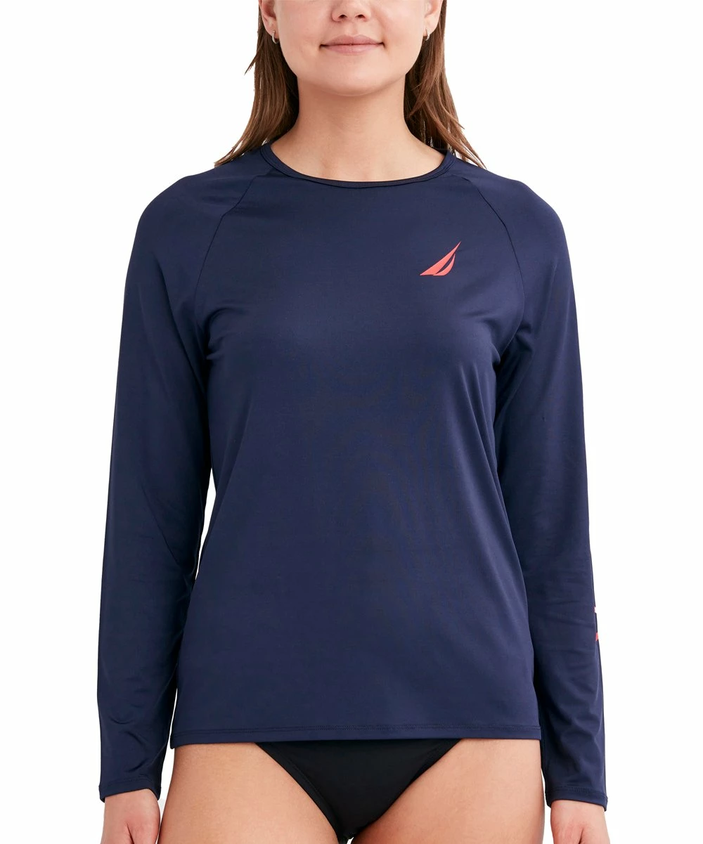 Get ready for a day in the sun with this long-sleeve rashguard top crafted from strech-infused fabric.