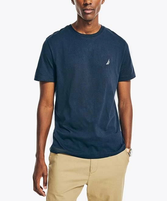 He complements his casual outfits with this tee that features a versatile solid hue and is crafted from comfortable cotton.