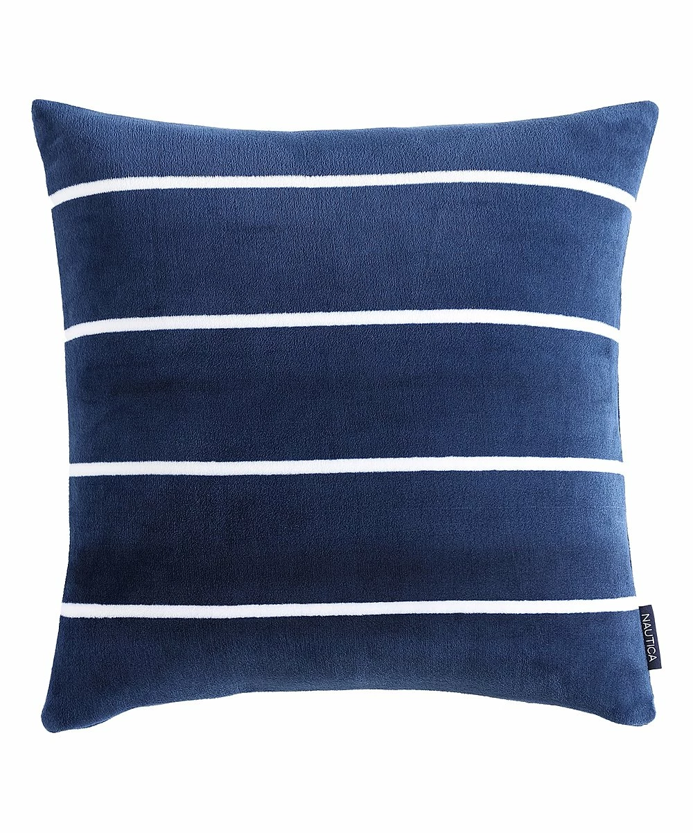 Brighten your home with this ultrasoft throw pillow featuring micro flannel fleece and a clean stripe pattern for a touch of nautical charm.