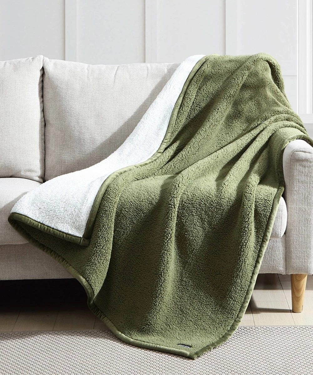 This throw features a plush texture and a two-tone design. Pre-washed for added softness.