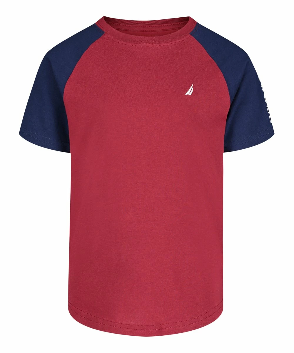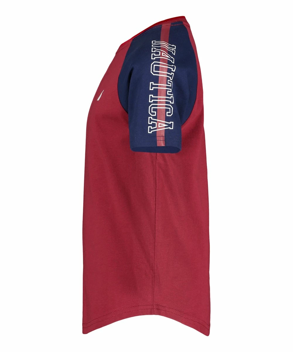 A short-sleeve raglan tee featuring a Nautica print and breathable cotton for all-day wear.