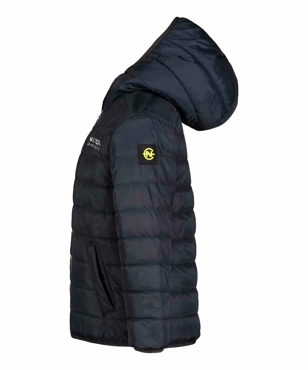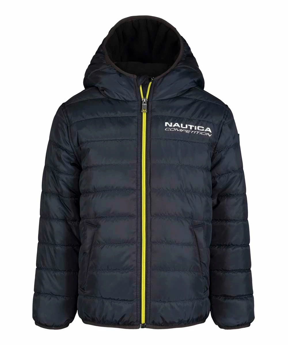 Take toastiness to go with this packable puffer jacket featuring a zip-up front and hood.