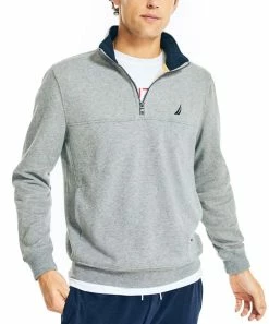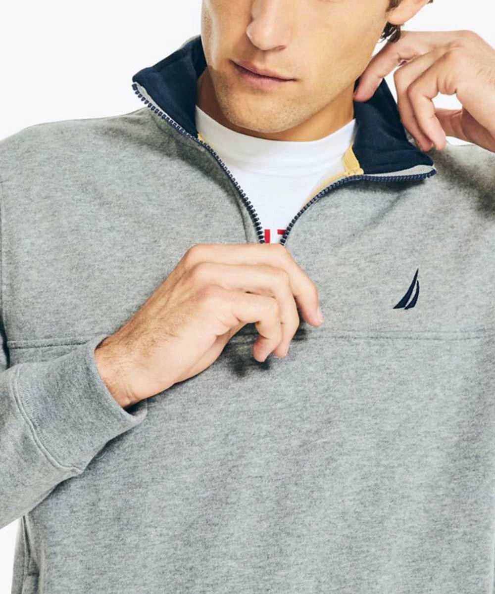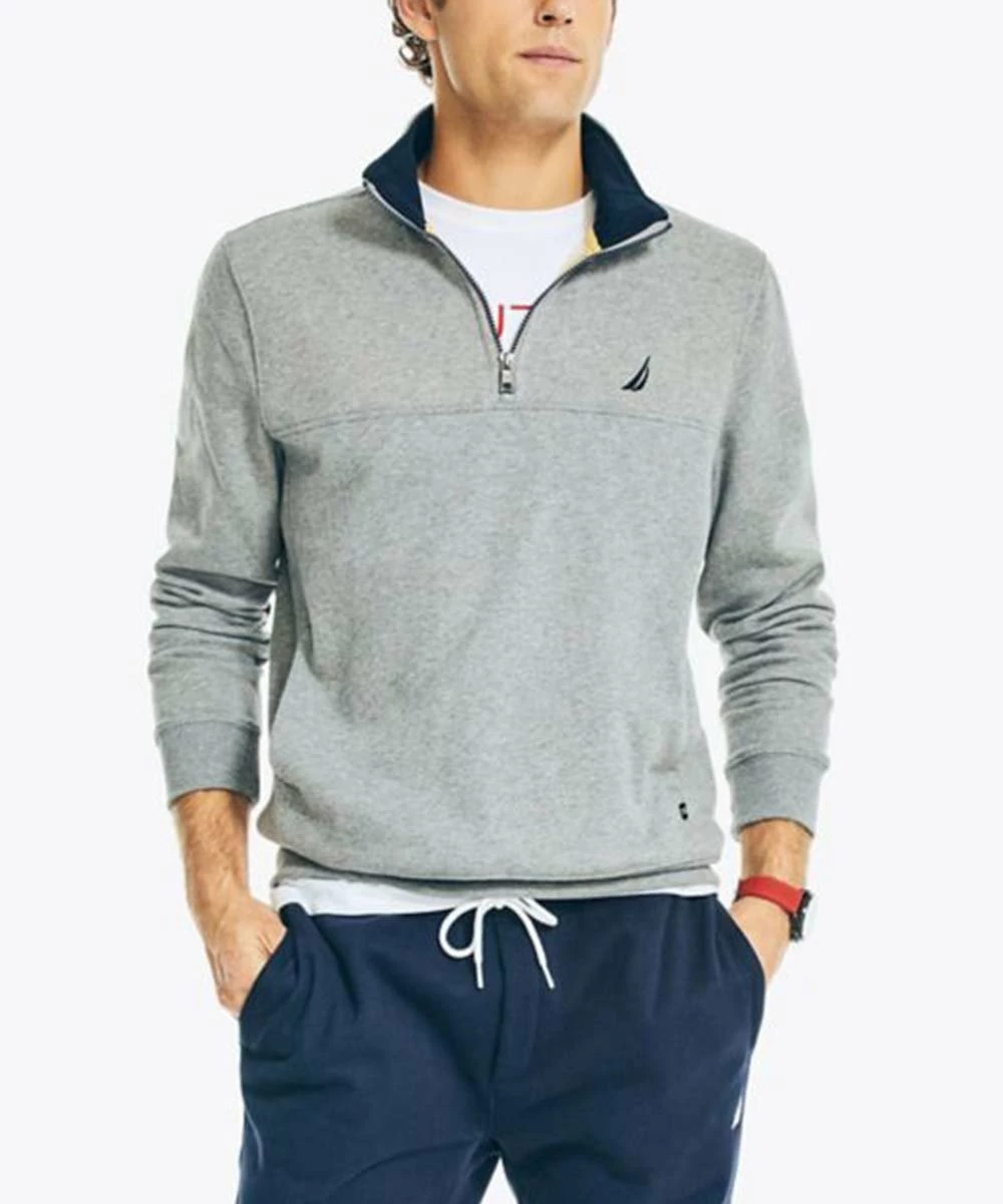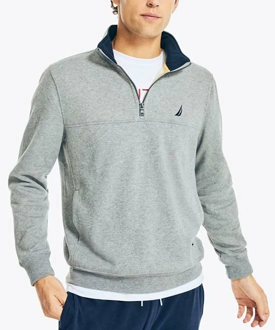 Layer up with this quarter-zip pullover crafted from soft cotton-blend fabric.