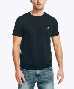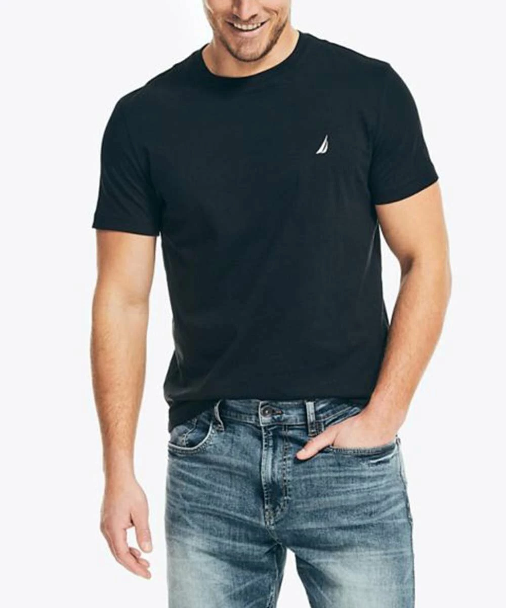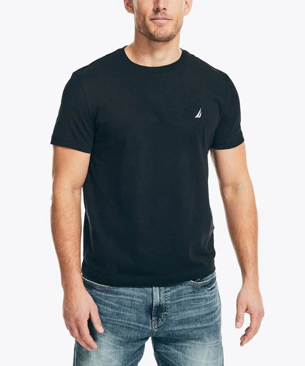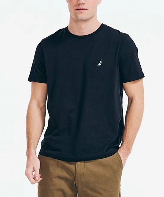 He complements his casual outfits with this tee that features a versatile solid hue and is crafted from comfortable cotton.