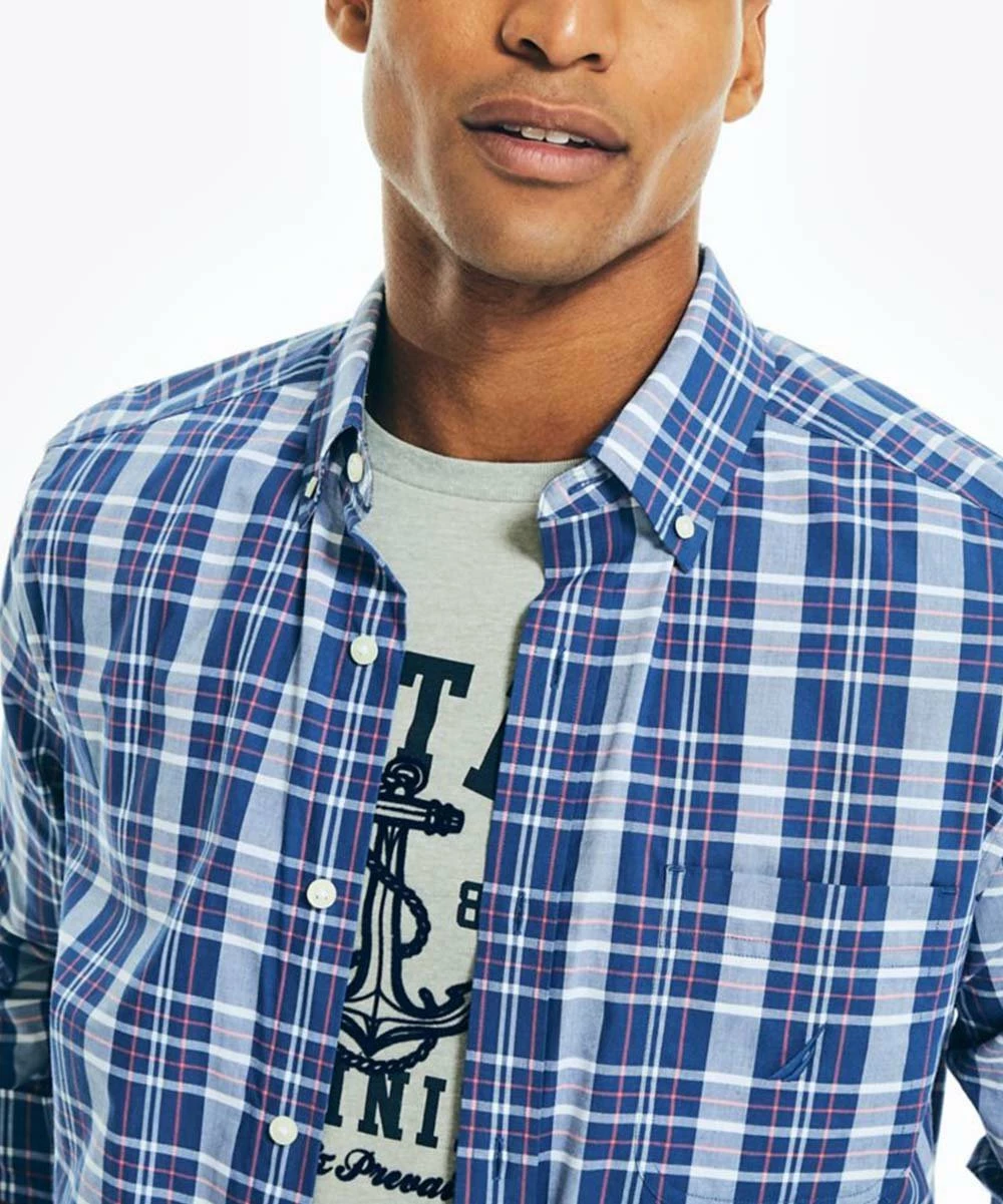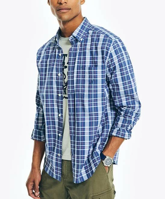 This button-up features a timeless pattern and a hint of stretch that makes it great for everyday wear.